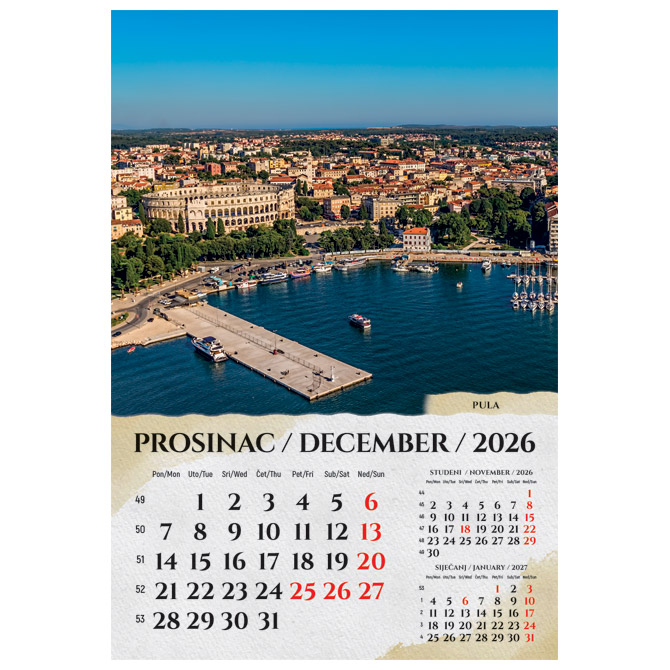 Kalendar “Razglednice Hrvatske 2026” 13 listova spirala