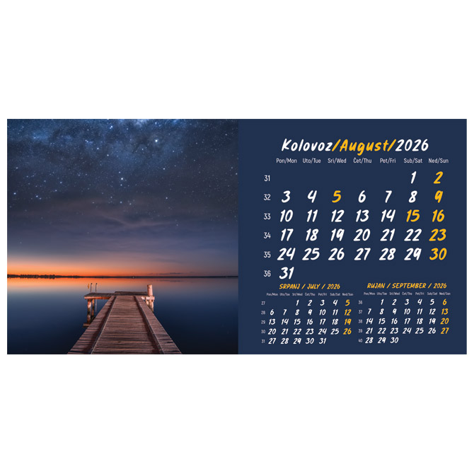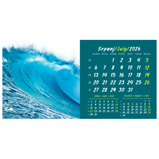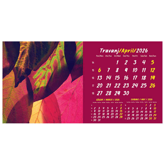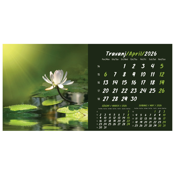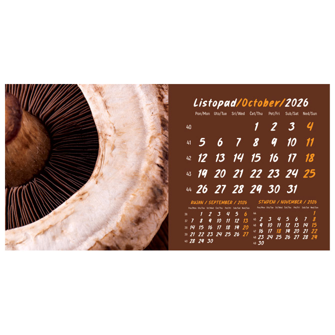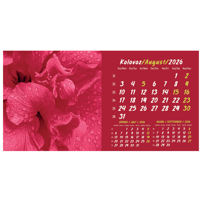 Kalendar stolni mali 2026. 13 listova, obostrani, spirala