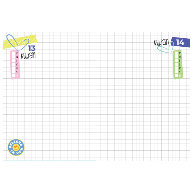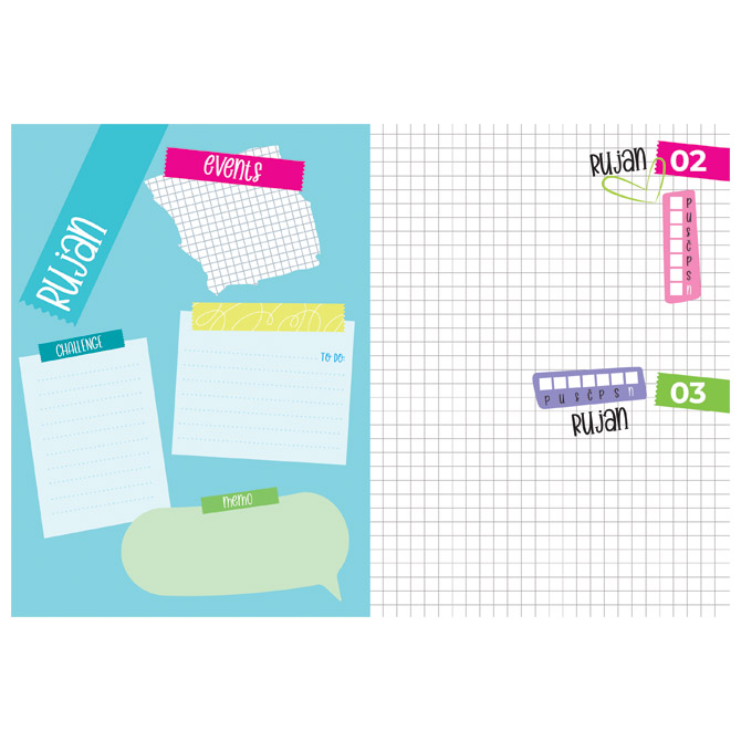 288 stranica; 70g papir; kvadratići; kapital vrpca; nije datiran, može poslužiti za više godina