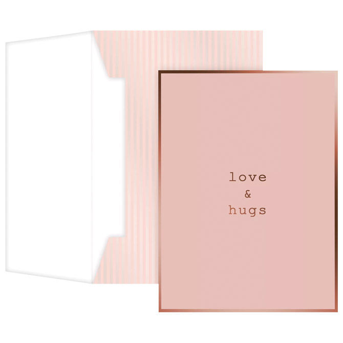 sadrži: kuvertu i čestitku s natpisom (hot folija) love&hugs; dimenzija: 10,5×14,8 cm; blister