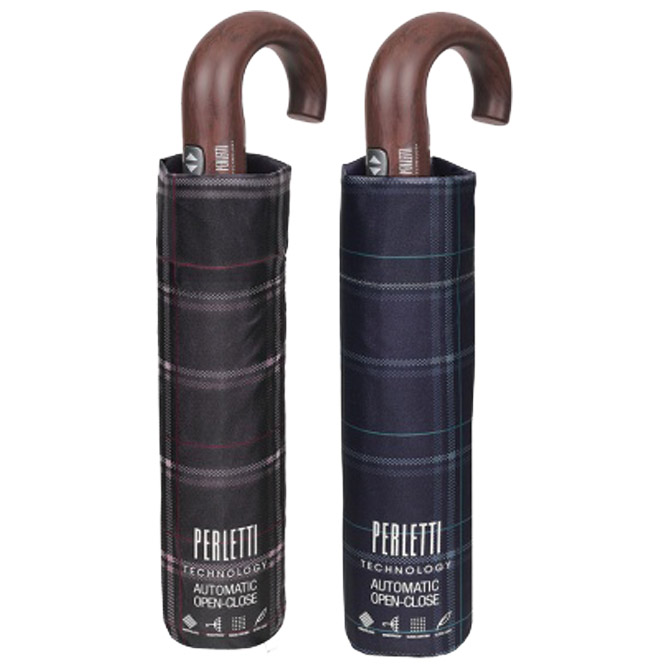 Kišobran automatik (otv+zatv.) sklopivi s drvenom ručkom Technology Perletti 21827 sort