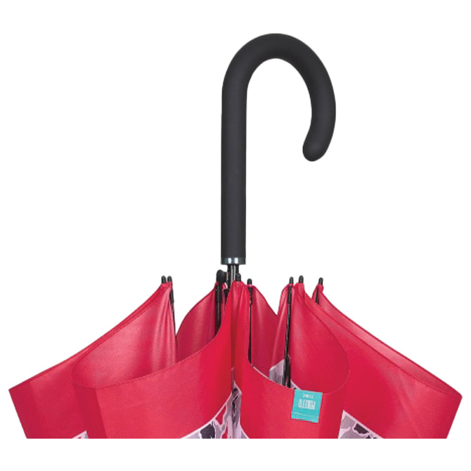 automatik; s plastičnom ručkom; polumjer zatvorenog kišobrana: 61 cm; 8 panela; fi: 102 cm; žice od fiber glass-a; otporan na vjetar; od mikrofibre (odbija kapljice kiše i brzo se suši); 2 dezena