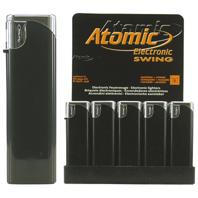 Upaljač elektronski sjajni Atomic Swing crno/srebrni