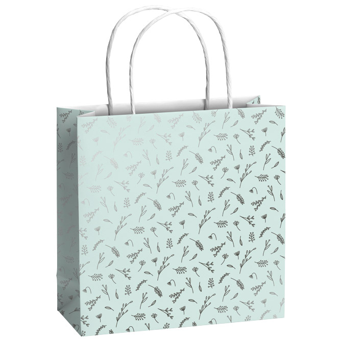 papir nepremazni s folijom parcijalno, biserna završna obrada; pletena ručka; dimenzija: 20x20x8 cm; 3motiva