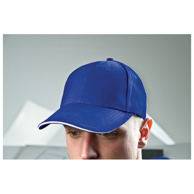6 panela; mat srebrna metalna kopča; s bijelom prugom na sredini vizira; sirovinski sastav: 100 % pamuk