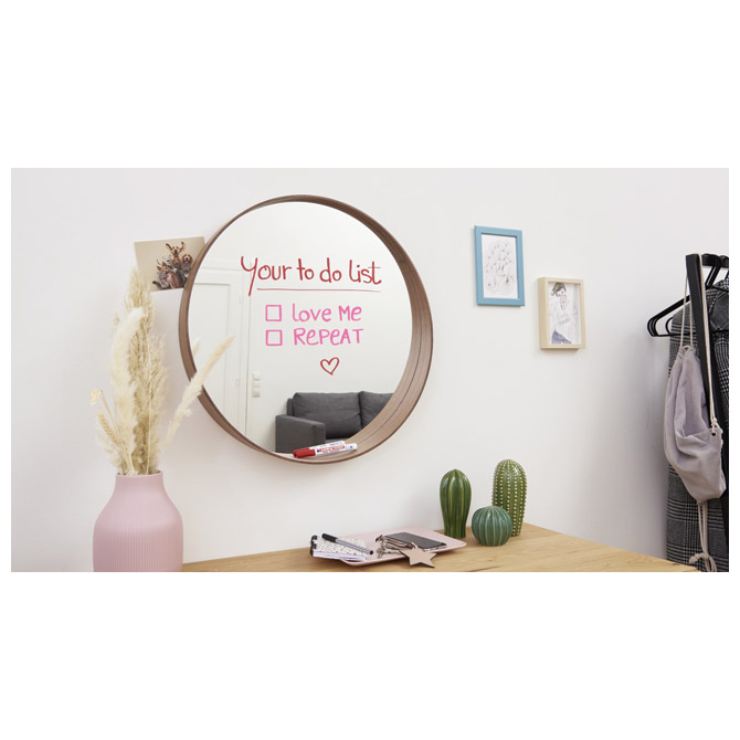nepermanentni; okrugli vrh; širina ispisa 2-3 mm; tekuća kreda na bazi vode; otporan na svjetlo; za pisanje po glatkim površinama (staklo, prozor, tamna ploča…); briše se vlažnom krpom