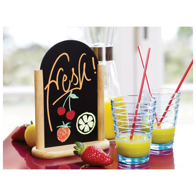 nepermanentni; klinasti vrh; širina ispisa 4-15 mm; tekuća kreda na bazi vode; otporan na svjetlo; za pisanje po glatkim površinama (staklo, prozor, tamna ploča…); briše se vlažnom krpom