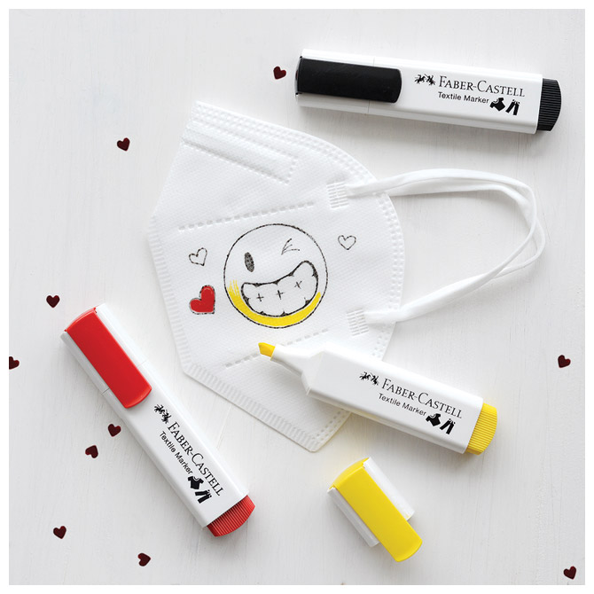 permanentni marker za mnoge tkanine; klinasti vrh; širina ispisa 5-2-1 mm; tijelo markera i poklopac su izrađeni od 100 % reciklirane plastike; idealno za konture i površine; fiksira se samostalno nakon 24 sata ili odmah ako se glača vrućom peglom bez pare; nakon fiksiranja otporan na pranje do 40°C ovisno o vrsti tkanine i sadržaju prirodnih vlakana