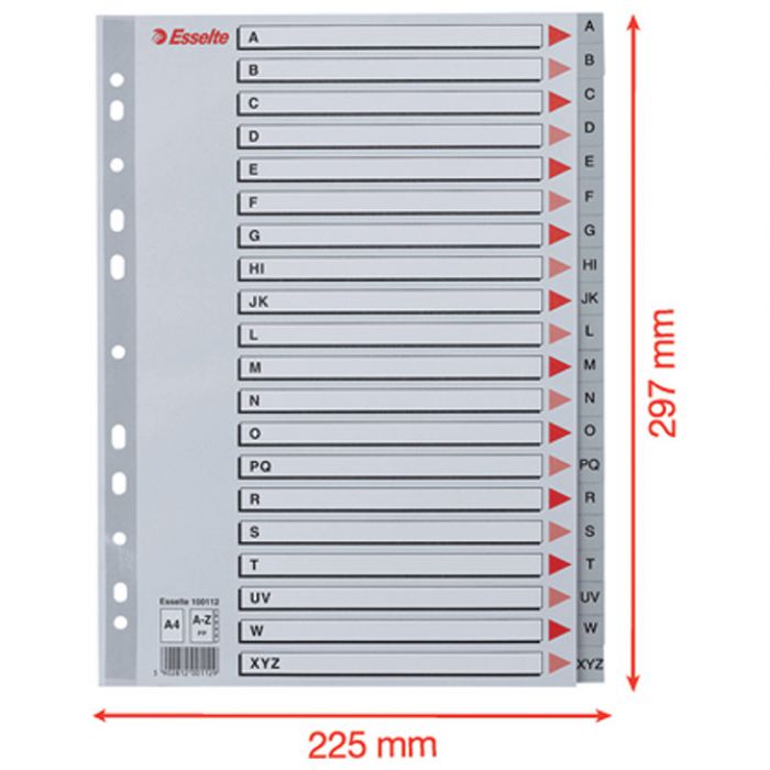 PREGRADA PLASTIČNA A4 A-Z 20L ESSELTE 100112 SIVA