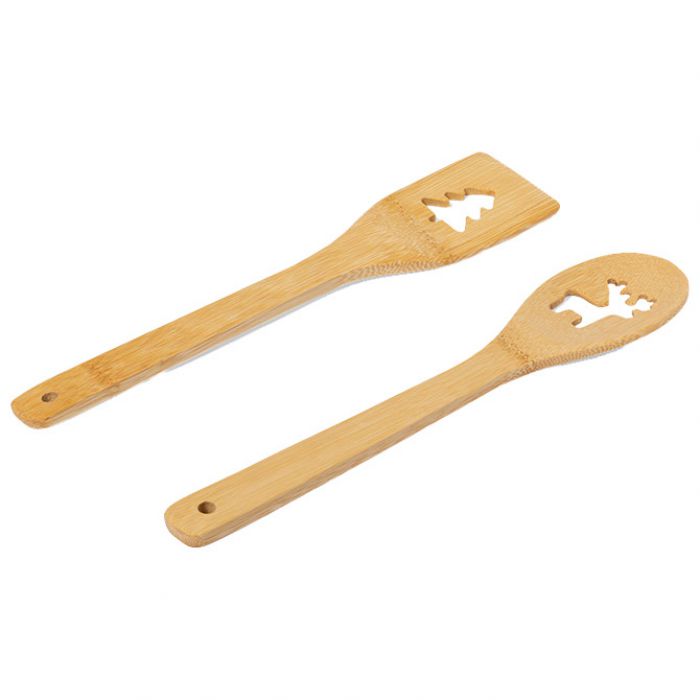Kuhinjski set (2 komada ) s izrezanim božićnim motivima. Uključuje žlicu i lopaticu izrađene od poliranog bambusa.