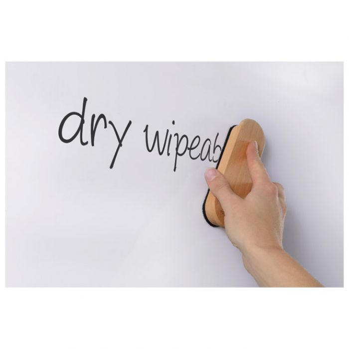 Drveni magnetski brisač s izmjenjivim jastučićem; dimenzije: D 15 x Š 4,5 x V 3 cm; izrađen od bukovog drva “fagus sylvatica” s lakiranim premazom; može se koristiti na bijelim pločama Legamaster; svaki predmet je jedinstven po boji i izgledu jer je izrađen od prirodnog drva; samo za suhu upotrebu
