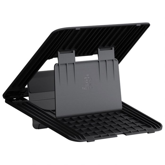 kompaktan i lagan, idealan za hibridni rad, dimenzije: 1,4×23,5×26,8, za prijenosna računala do 15″ i 4 kg, preklopljen je potpuno plosnat, a rasklopljenoga se može postaviti u jedan od 12 položaja visine: 13,4/15,3/16,9/18,3/19,4/20,4cm/12,6/14,4/15,9/17,1/18,1/18,9 cm, raspon nagiba:17/22/27/30/34/37°/31/36/40/44/48/50°, materijal koji se može 100 % reciklirati, jamstvo 5 godina