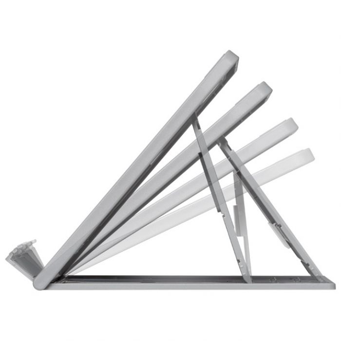 elegantan 2-u-1 dizajn podesiv je po visini i kutu kako bi poboljšao držanje tijela; potiče pravilno poravnanje očiju i podržava udobnost vrata i ramena uz istovremeno održavanje unutarnje komponente prijenosnog računala hladnima; protuklizne podloge sprječavaju klizanje stalka prema naprijed; jastučići osiguravaju siguran položaj vašeg uređaja; tanki sklopivi dizajn idealan je za putovanja; koristi se s vanjskom tipkovnicom i mišem; podržava 17-inčne standardne i gaming prijenosnike; garancija: 2 godine. Spojite ergonomske prednosti podizanja visine zaslona s tehnološkim prednostima poboljšane cirkulacije zraka za vaše prijenosno računalo pomoću Kensington® SmartFit® Easy Riser™ Go podesivog ergonomskog stalka za prijenosno računalo i stalka za hlađenje