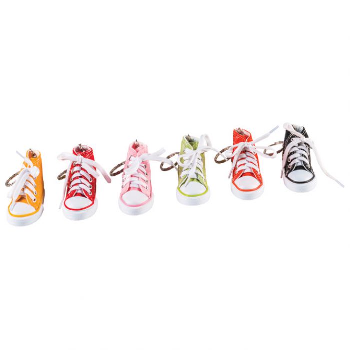 dimenzija: 8,5×3,8 cm; oblik: tenisica; 6 boja: crna, crvena, narančasta, roza, zelena i žuta