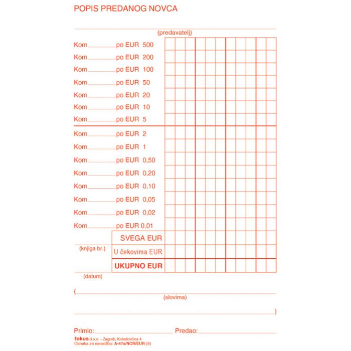 OBRAZAC A-47A/NCR/EUR POPIS PREDANOG NOVCA FOKUS