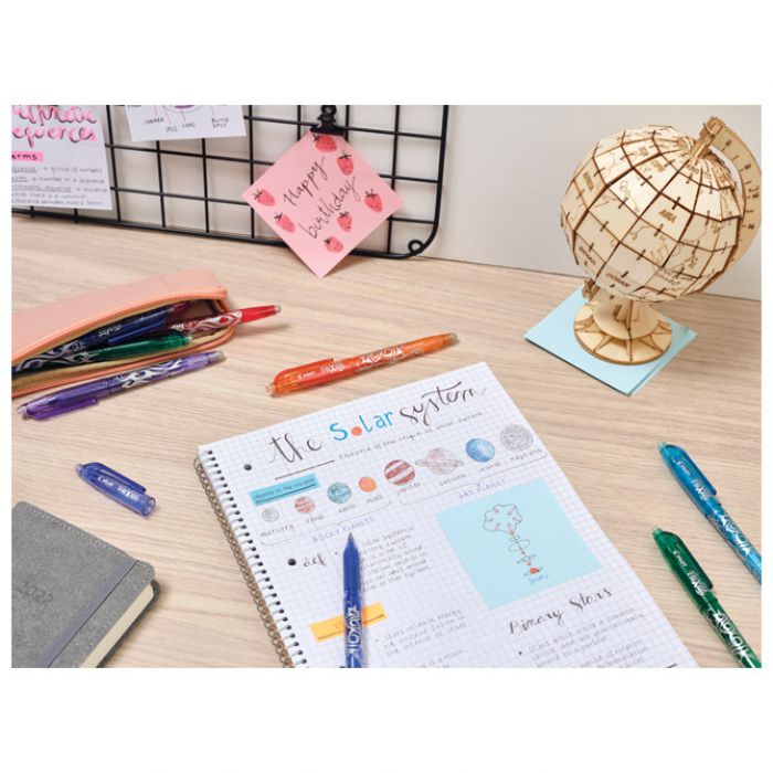 promjer kuglice: 0,5 mm; širina ispisa: 0,25 mm; ergonomski gumirani grip; plastično tijelo olovke; piši-briši-ponovi model; termo-osjetljiva tinta na bazi gela; s poklopcem; 50 % izrađeno iz recikliranih materijala (izuzev zamjenjivih dijelova); rezervni uložak BLS-FR5-S3; tinta na višim temperaturama postane transparentna ili se obriše sa gumicom na vrhu rolera; na niskim temperaturama (-10°C) tinta se ponovno pojavljuje