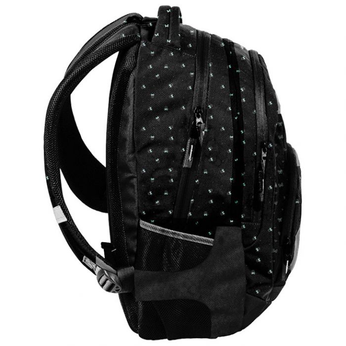 dimenzija: 30x40x18 cm; ergonomski oblikovan leđni dio omogućava protok zraka; podstavljene naramenice; remenčići za podešavanje; snažno reflektirajući, sigurnosni dijelovi; 3 odjeljka sa zatvaranjem na zip (sa dodatnim pretincima); 1 džep na zip s prednje strane; pretinci na bočnim stranama; otvor za slušalice; izrađen od materijala koji odbija vodu; sirovinski sastav: poliester