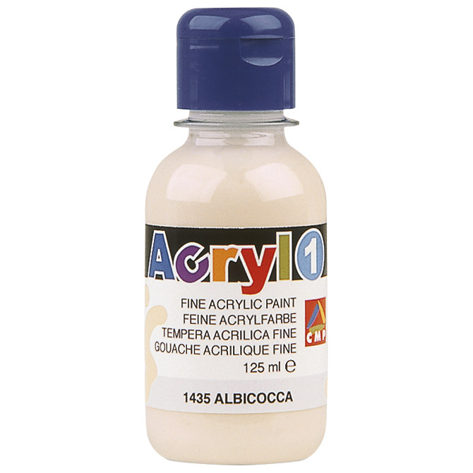 125 ml; PET boca sa sigurnosnom kapicom za zatvaranje; fina akrilna boja; na vodenoj bazi najfinije kvalitete s visokom koncentracijom pigmentirane akrilne suspenzije; karakterizira ju velika neprozirnost; nakon što se osuši potpuno je postojana; može se koristiti na bilo kojoj vrsti površine: papir, plastika, drvo, slikarsko platno, staklo i dr.; može se nanjeti u tanjem i debljem sloju; lako se nanosi, a nanosi su dosljedni, elastični, živopisni, ugodni i otporni na dodir; potrebno je najmanje 24 sata da se potpuno osuši; temperature bi se trebale kretati između 18 i 25 ° C; velika otpornost; za bolju povezanost boje sa podlogom nanjeti primer, a za bolje fiksiranje boje nanjeti bezbojni akrilni lak (mat ili sjajni); pogodna je za razne tehnike, ali i za ukrašavanje i hobi aktivnosti poput decoupagea jer vrlo dobro reagira na lakove i aditive koji se koriste u takvim tehnikama; tonovi su intenzivni, a efekti impresivni; njihovim miješanjem mogu se dobiti novi skladni i živopisni tonovi; može se lakirati akrilnim lakom i stoga postati dugotrajniji, svjetliji i trajniji; može se miješati sa proizvodima na bazi vode