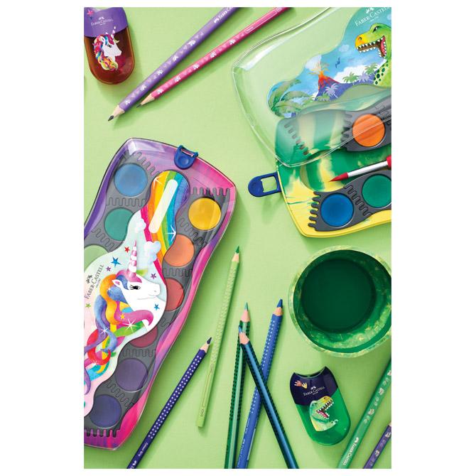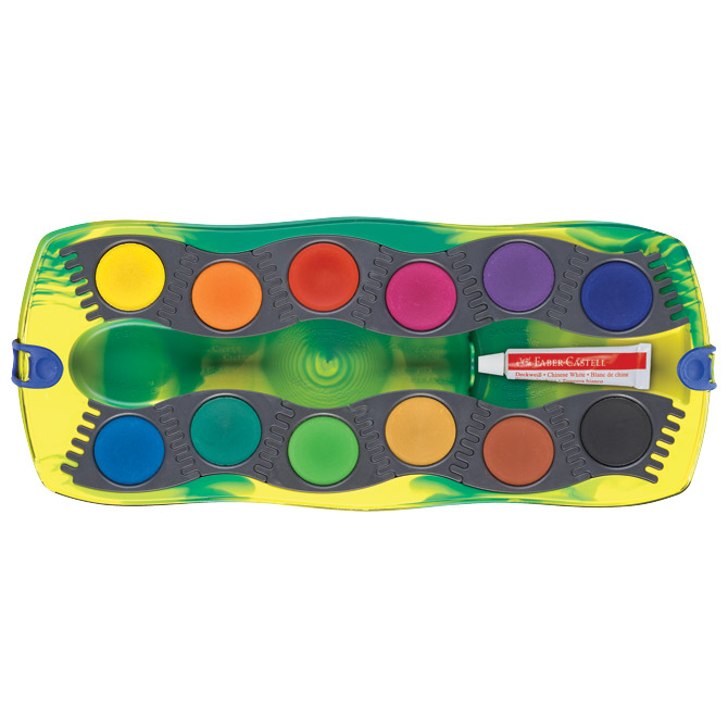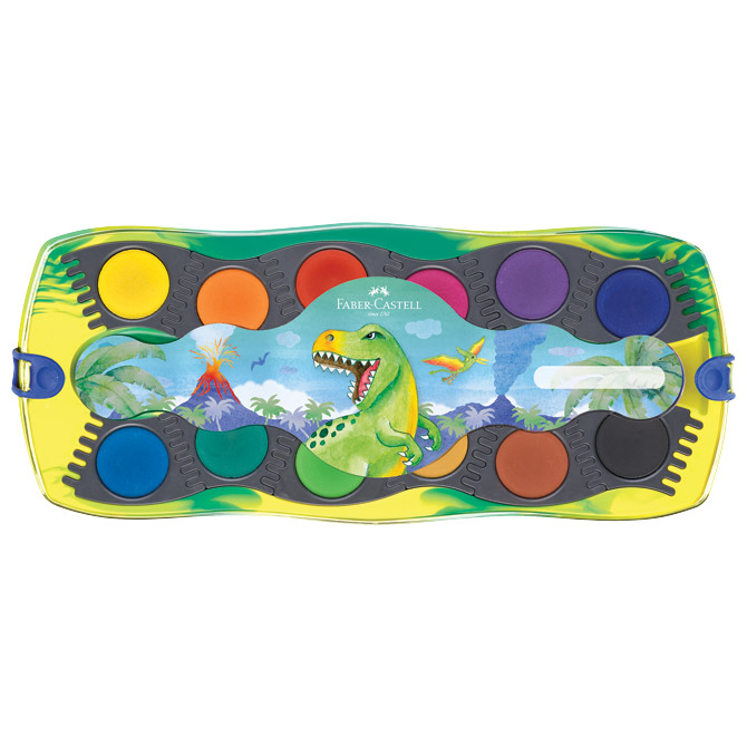 Boja vodena fi 24 mm 12 boja + bijela tempera Connector Dino Faber Castell 125036
