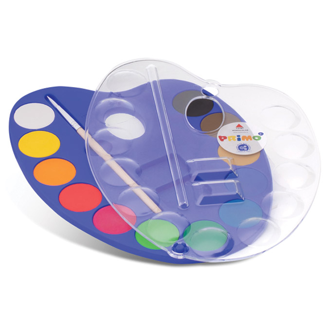 Boja vodena fi 25 mm 12boja+kist na paleti Primo 101A12TO