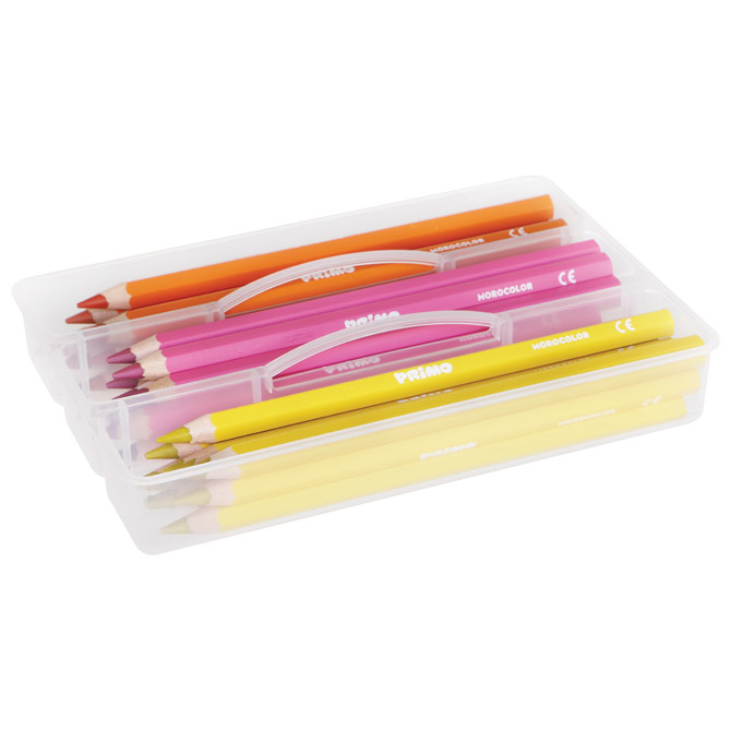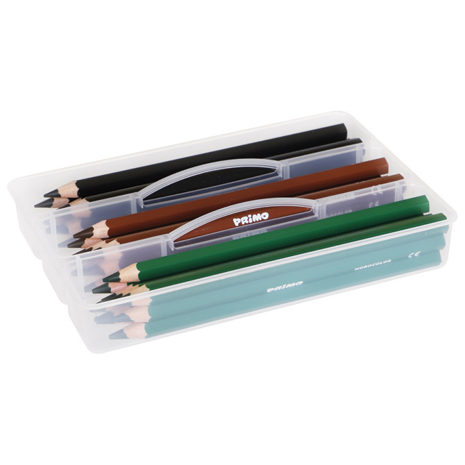 šiljene; debljina mine: 5,5 mm (iznimno debela mina); šesterokutne; boje su odvojene pregradama; set od 120 boja (12 boja x 10 komada); PP kutija s 4 ladice; svaka ladica ima 3 pretinca i dvije ručke za nošenje; bočno zatvaranje s kopčama; s ručkom za nošenje