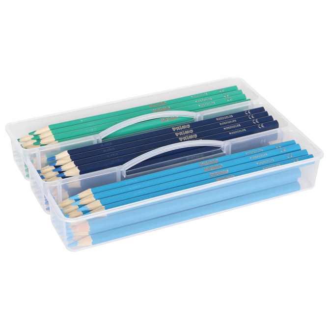 šiljene; debljina mine: 2,9 mm; šesterokutne; živopisne boje; boje su odvojene pregradama; set od 216 boja (12 boja x 18 komada); PP kutija s 4 ladice; svaka ladica ima 3 pretinca i dvije ručke za nošenje; bočno zatvaranje s kopčama; s ručkom za nošenje