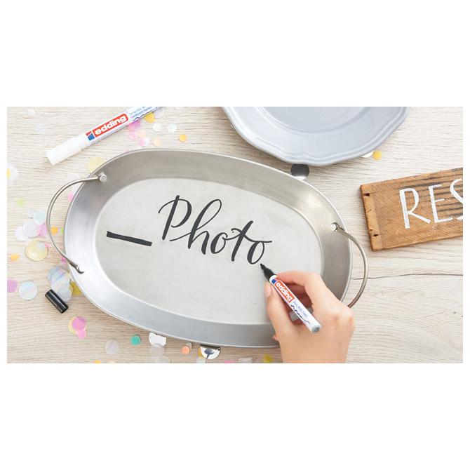 permanentni; lakirajući; okrugli vrh; aluminijsko kućište; širina ispisa 1-2 mm; za obilježavanje, pisanje i bojanje po gotovo svim materijalima (tamni i transparentni materijali, staklo…); visoka otpornost na: svjetlo, brisanje i vrućinu