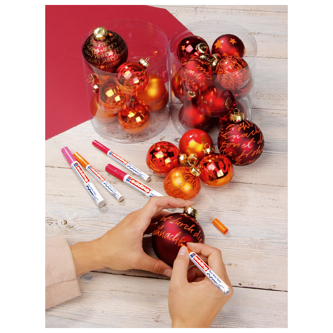 permanentni; lakirajući; okrugli vrh; aluminijsko kućište; širina ispisa 2-4 mm; vodootporan; za obilježavanje, pisanje i bojanje po gotovo svim materijalima (tamni i transparentni materijali, staklo…); visoka otpornost na: svjetlo, brisanje i vrućinu