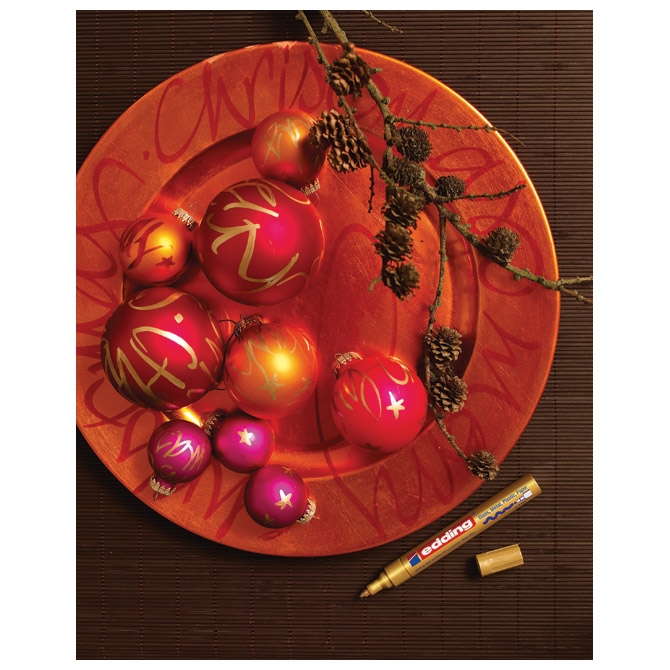 permanentni; lakirajući; okrugli vrh; aluminijsko kućište; širina ispisa 2-4 mm; vodootporan; za obilježavanje, pisanje i bojanje po gotovo svim materijalima (tamni i transparentni materijali, staklo…); visoka otpornost na: svjetlo, brisanje i vrućinu