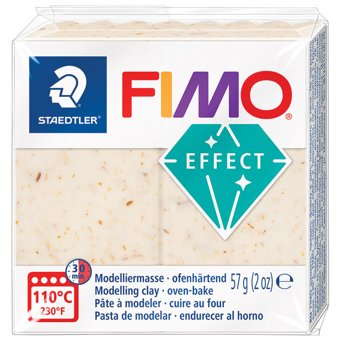 57 g; stvrdnjava se u pećnici (30 minuta na 110°C); mekana; lako se oblikuje; izvrsno se miješa sa Fimo soft, Fimo leather-effect i Fimo professional; pločica je podijeljena na 8 jednakih dijelova radi lakšeg kombiniranja boja; botanički efekt sa česticama biljaka; idealno za kreativne projekte sa romantičnim boho izgledom; za početnike i umjetnike amatere; idealna za izradu nakita, dodataka, predmeta za uređenje doma i sl.