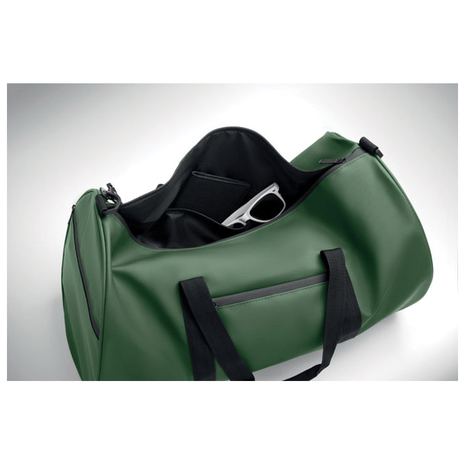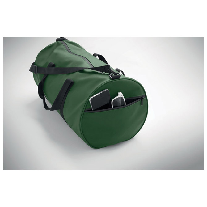 Putna torba od 600D RPET poliestera s PU premazom. Prednji džep s patentnim zatvaračem. Unutarnja podstava od 210D RPET poliestera. 1 bočni pretinac s patentnim zatvaračem / 1 bočni mrežasti pretinac. Unutrašnji džep s patentnim zatvaračem.Dim: 51X28CM