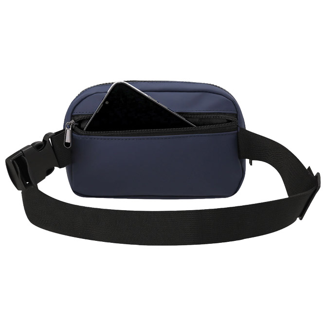 Pojasna torbica od PU-a, središnji džep sa zatvaračem na patentni zatvarač i podesivi remen s kopčom, uključuje stražnji džep sa zatvaračem sa patentnim zatvaračem za dodatnu sigurnost. Dim:19,5x13x5,5 cm