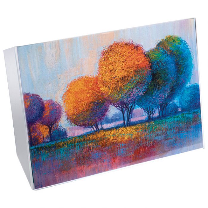 L oblik; izrađen je od visokokvalitetnog akrila (PMMA) s vrlo visokom prozirnošću; za 1 prospekt formata A5; dimenzija 148×210 mm; može se koristiti okomito i vodoravno zahvaljujući zakošenoj bazi; otporan je na UV zračenje pa neće požutjeti; idealan je za izlaganje fotografija ili dokumenata na stolu ili polici; njegov nagnuti kut omogućuje optimalnu vidljivost