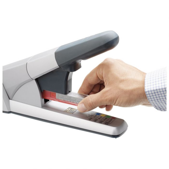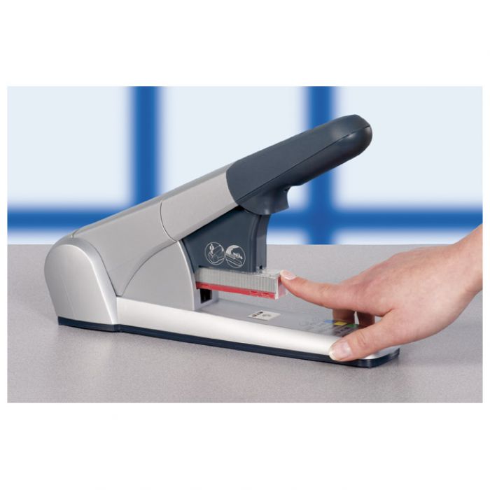stolni; spaja do 8 mm debljine ili 80 listova papira 80 g/m2; dubina spajanja 43 mm; spajanje: zatvoreno klinasto; spajalice u kaseti: 210 kom x K6, K8, K10, K12; garancija 10 godina