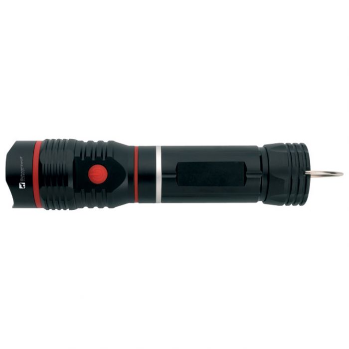 Schwarzwolf vanjska metalna svjetiljka. Sadrži Cree XPE diodu i produžnu COB diodu koja omogućuje vrlo intenzivno osvjetljenje. Na kraju svjetiljke je magnet i kuka za vješanje. Pakirano u Schwarzwolf poklon kutiju. Svjetlina: Cree XPE dioda 130 lumena, COB dioda 180 lumena. . . Dimenzije: 16,7 × 4 cm, rastezljiva duljina 22,8 cm. Baterije 4 × AAA uključene.