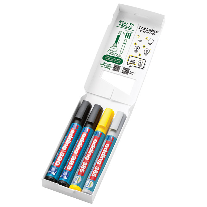 set sadrži: e-385; za signiranje i sjenčanje; e-380 u crnoj boji za vizualizacije; e-383 u crnoj boji za pisanje