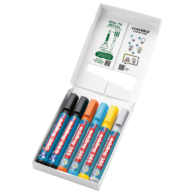 set sadrži: e-385; za signiranje i sjenčanje; e-380 u crnoj boji za vizualizacije; e-383 u crnoj boji za pisanje