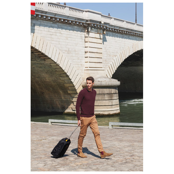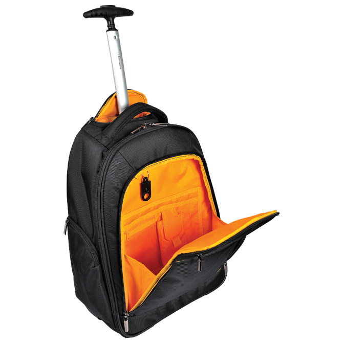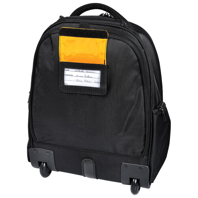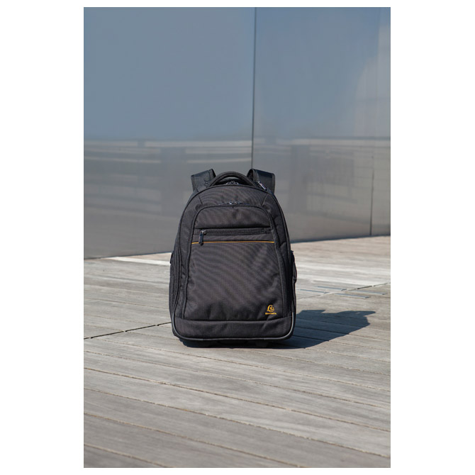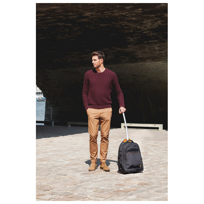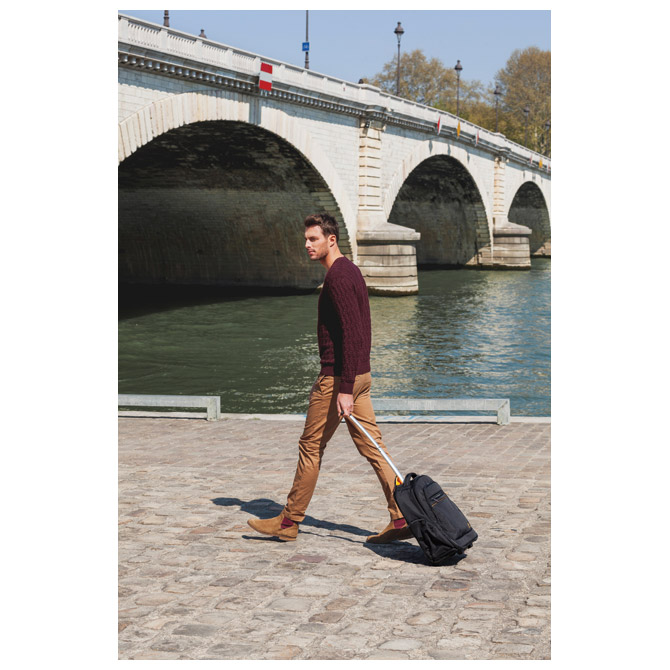 sa kotačićima i teleskopskom ručkom (skrivenom u pretincu sa zatvaranjem na zip); za 15,6″ prijenosno računalo + tablet; ima: glavni odjeljak sa zatvaranjem na zip te integrirani lokot na kojem jednostavno možete podesiti vlastitu šifru, džepić na zip s integriranim USB kabelom koji također ima pristupnu točku s vanjske strane, s vanjske strane jedan veći multifunkcijski pretinac na zip + klasičan pretinac na zip, mjesto za osobne podatke s preklopom na čičak, bočni pretinci sa zatvaranjem na zip; prihvaćen kao ručna prtljaga od većine avio kompanija