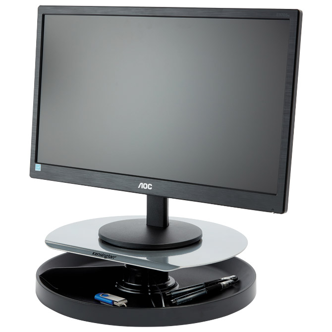 stalak postavlja monitor u razini s vašim očima kako bi smanjio umor očiju i vrata; patentirani 360-stupanjski okretni vrtuljak smanjuje nered na radnoj površini pružajući vam rotirajuće pojedinačne odjeljke za brz i jednostavan pristup priboru na radnoj površini poput spajalica, samoljepljivih bilježaka, spajalica, olovaka i mnogo toga drugog; štedi prostor na radnoj površini i pruža elegantan izgled; čvrst dizajn koji može podnijeti široki monitor težak do 18 kg; SmartFit® sustav omogućuje vam prilagodbu visine monitora prema vašoj osobnoj boji udobnosti koristeći priloženu kartu ruku zajedno sa stalkom za monitor; garancija: 3 godine