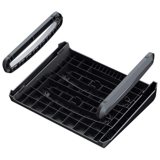 dimenzije platforme:490 x 360 mm, ima masirajuću površinu i namješta se po visini u tri položaja (79/116/126 mm), nagib: 9°, od kojih je jedan s oscilirajućim pokretima za poboljšanje cirkulacije, noge se mogu odvojiti i umetnuti u tijelo oslonca za stopala radi lakšeg prenošenja, materijal koji se može 100 % reciklirati, jamstvo 5 godina