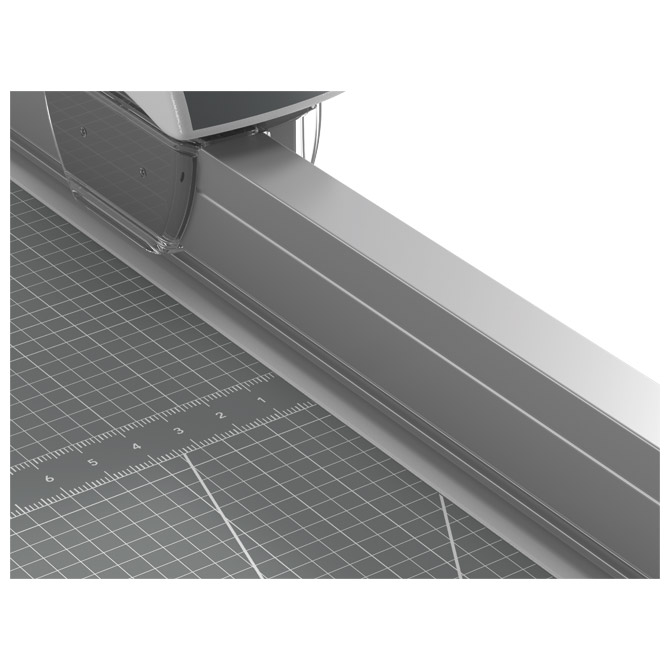 stolni; reže 15 listova papira 80 gramskog papira (s ravnom oštricom); snažan i svestran rotacijski rezač papira A3 formata; idealan za čestu upotrebu u uredu; odabir između ravnih, valovitih ili perforirajućih oštrica koje dolaze u brzo zamjenjivim prozirnim plastičnim ulošcima; valovita oštrica reže; perforirajuća oštrica perforira do 5 listova papira od 80gsm; brzo i sigurno mijenjanje oštrica omogućeno je spuštanjem odabranih uložaka u ergonomski oblikovanu ručku rezača; automatska stezaljka za papir i jednostavni metrički vodiči olakšavaju umetanje papira; glava rezača glatko klizi niz vodičnu traku za precizno rezanje; čvrsta plastična osnova s gumiranim nogicama za sigurnost i stabilnost; jednostavno spremanje kada nije u upotrebi; dimenzija: 30,6×10,6×54,7 cm; težina: 1,69 kg; garancija 5 godina (ne odnosi se na potrošne dijelove)