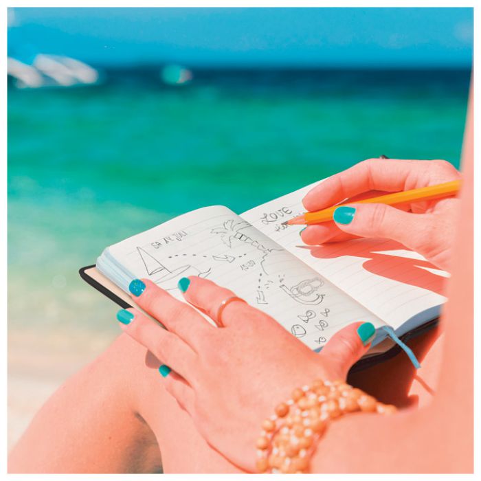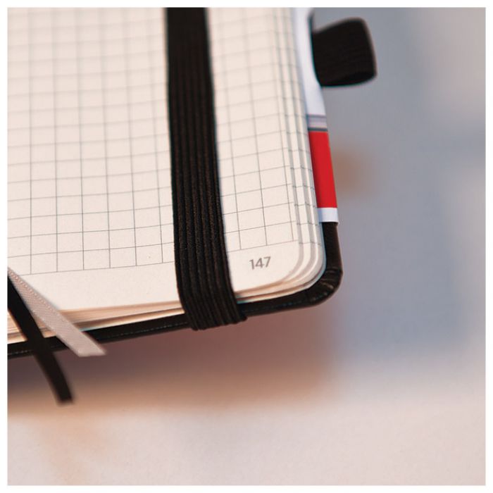 96 listova, šamoa; 80 g/m2; visokokvalitetan papir kroz koji ne prolazi tinta; s gumicom (crna), 2 označivača, mjesto za olovku, 2 etikete, 1 etiketa za ime, zastavice i džep na zadnjoj korici; stranice su numerirane; zadnjih 8 listova je perforirano; tvrde korice sa zaobljenim rubovima
