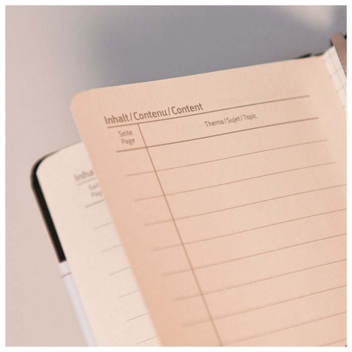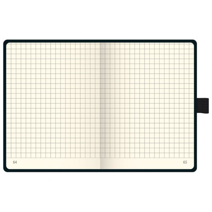 96 listova, šamoa; 80 g/m2; visokokvalitetan papir kroz koji ne prolazi tinta; s gumicom (crna), 2 označivača, mjesto za olovku, 2 etikete, 1 etiketa za ime, zastavice i džep na zadnjoj korici; stranice su numerirane; zadnjih 8 listova je perforirano; tvrde korice sa zaobljenim rubovima