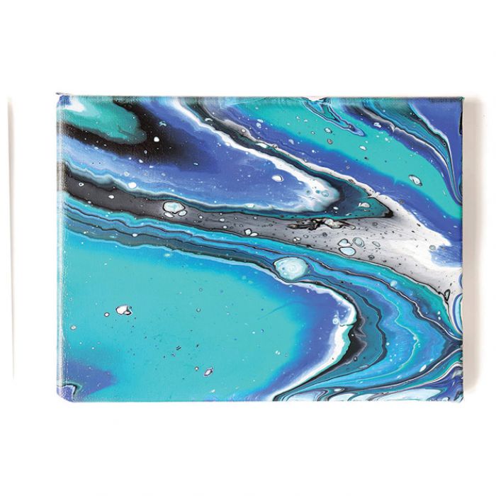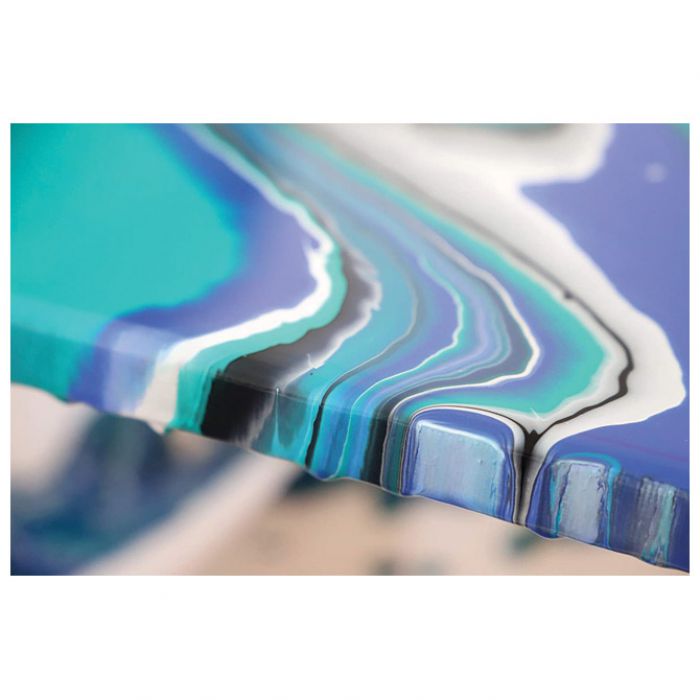 koristi se za Pouring tehniku (tehnika izlijevanja); boja je odmah spremna za korištenje (ne treba dodavati medij Pouring); prije upotrebe promućkati i ostaviti par minuta; boje se mogu izlijevati na: slikarsko platno, drvo i dr. 1. direktno na podlogu, 2. mogu se podijeliti u čašu, točiti jednu preko druge bez miješanja, a zatim izliti na podlogu; nakon što boju izlijemo na podlogu lagano ju mičemo u svim smjerovima; višak boje će se izliti sa podloge pa se preporučuje nositi rukavice te zaštititi radnu površinu; dodavanjem nekoliko kapi silikonskog ulja u boje prije upotrebe mogu se dobiti kružni efekti; u kartonskom kovčegu; set od 5 boja x 100 ml (bijela, crvena, plava, zelena i žuta)