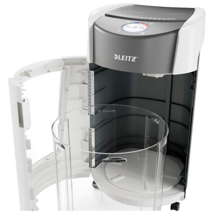 10 listova u 10 sekundi; kapacitet koša: 35 litara (550 A4 lista); Micro Cut uništavanje (mini konfete); širina rezanja: 2×15 mm; širina ulaza: 223 mm; na kotačima; razina sigurnosti: 5; ima funkciju automatskog zaustavljanja i vraćanja unazad kad se stavi previše papira (Anti-jam tehnologija); neprekidni radni ciklus: 120 minuta; tihi rad uništavača; osim papira uništava spajalice (ručne i strojne); dimenzija: 406 x 589 x 320 mm; težina: 15 kg; 2 godine+1 – dobivate dodatno jamstvo ako se registrirate na leitz.com; LED rotirajući display sa indikatorima: punog koša, otvorenih vrata, pregrijavanja i prenatrpanosti.