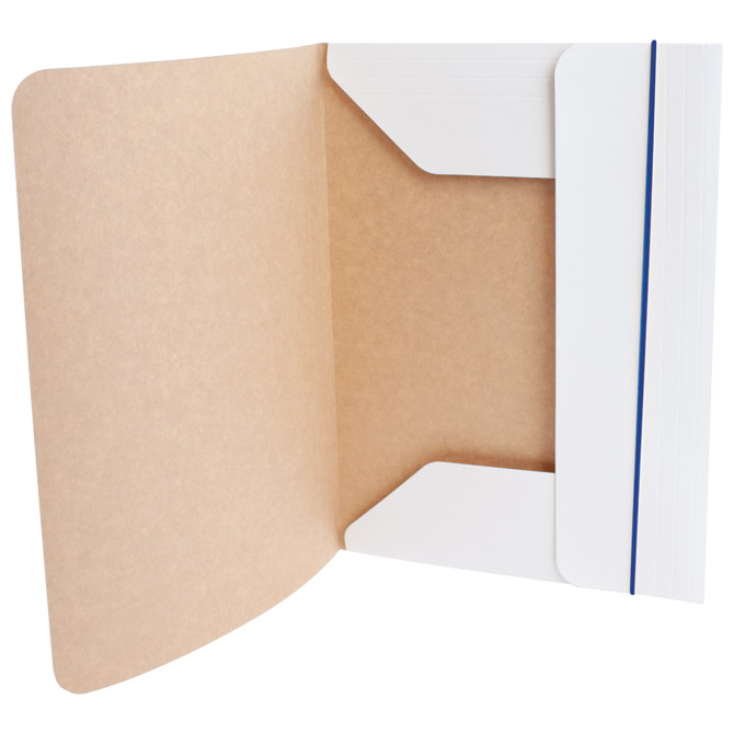 format: A4; dimenzija: 235×323 mm; karton kraft: 270 g/m2; 3 klape i gumica (gumice sortirano: crvena, crna, tamno plava, tamno zelena i žuta)