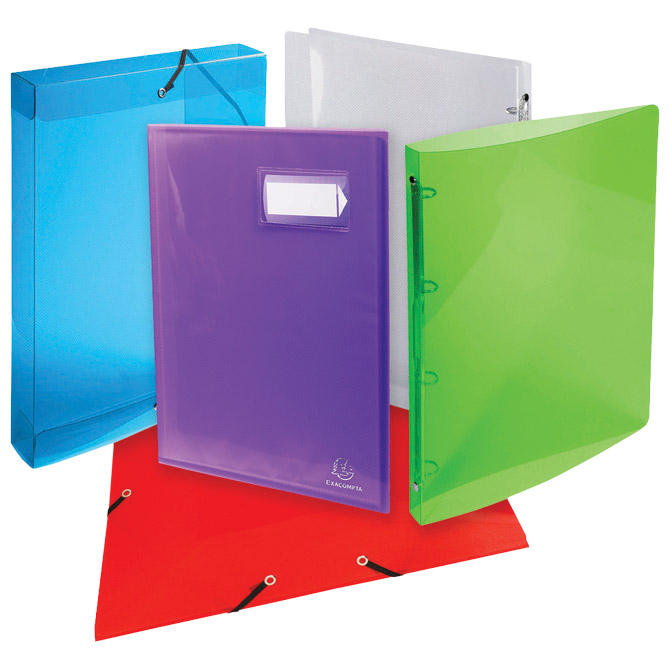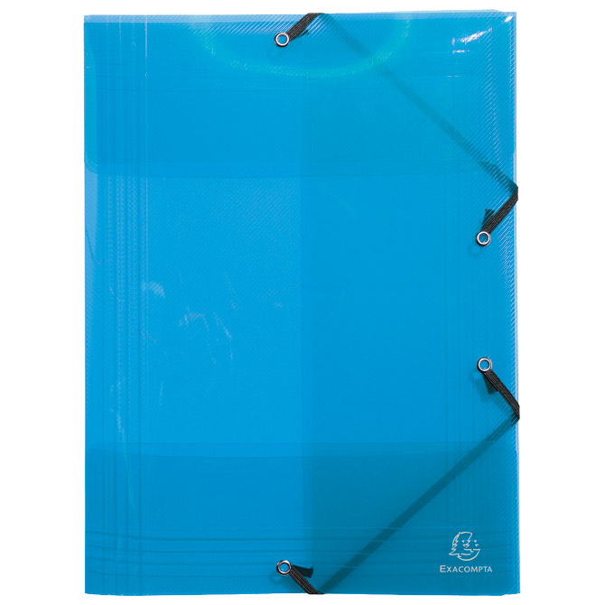 format: A3; materijal: PP; debljina: 7/10E; vanjske dimenzije: 32×44 cm; razne boje: plava – kristalna – zelena – ljubičasta – crvena; hrbat (mm): 3,5; kapacitet (listova 80 gr.) : 350; način zatvaranja: S elastičnim trakama – 3 preklopa; težina jedinice: 230 g