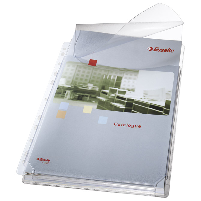 format: A4; PP – sjajni; sa hrptom; ekstra čvrsti; plastični rub; otvor s gornje strane sa klapom; univerzalna perforacija; set od 5 komada