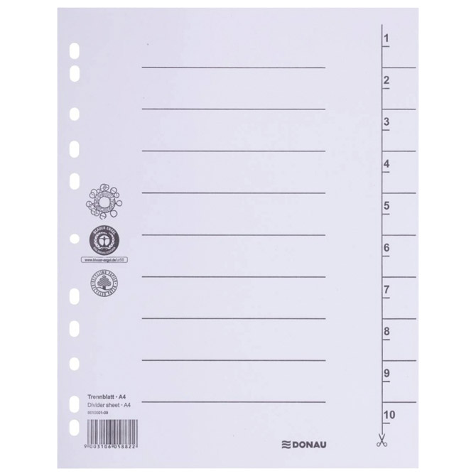 Pregrada kartonska A4 250g pk100 Donau 8610001-09 bijela