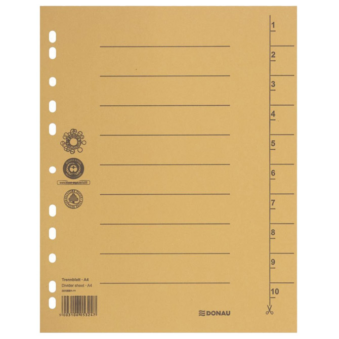 format: A4; dimenzija: 235×300 mm; karton; 250 g/m2; 11 rupa; na 1 listu brojevi 1-10 koji se mogu izrezati po otisnutoj liniji; set od 100 komada
